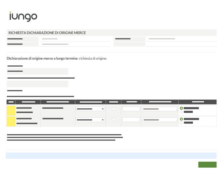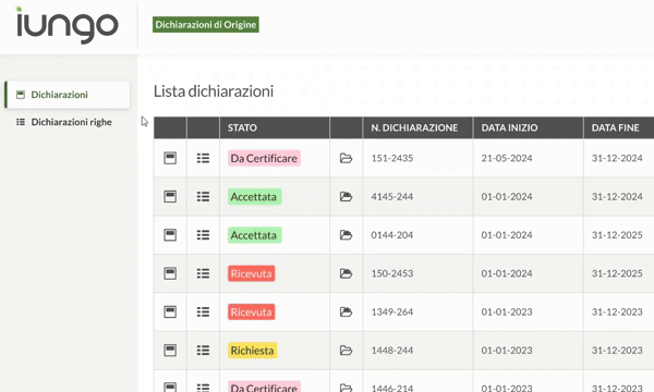Invio automatico delle richieste ai fornitori: le richieste vengono inviate automaticamente ai fornitori tramite IUNGOmail, semplificando la raccolta delle dichiarazioni di origine.