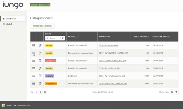 - Standardizzazione: IUNGO ti permette di richiedere ai fornitori la documentazione necessaria attraverso una semplice IUNGOmail, facilitando la gestione anche al fornitore