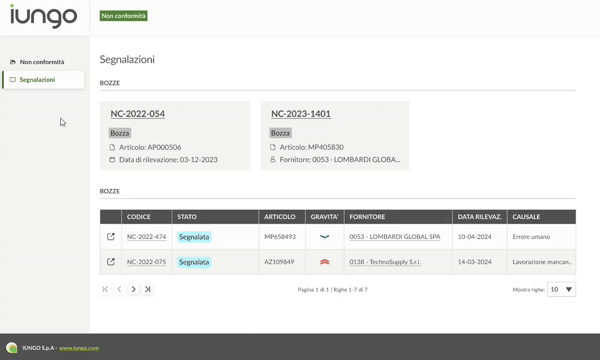 Comunicazione diretta con i fornitori: invio automatico delle non conformità ai fornitori tramite IUNGOmail, per richiedere la compilazione delle azioni correttive e delle tempistiche di risoluzione, garantendo una risposta tempestiva.