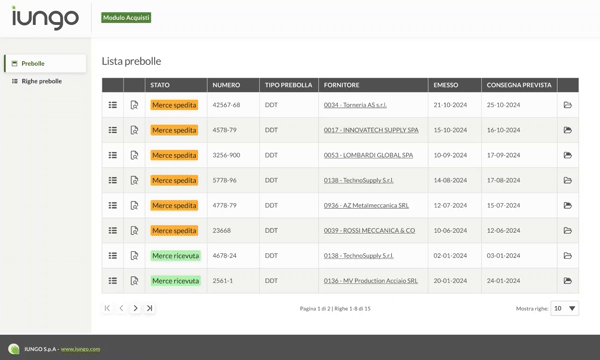 Attraverso la gestione digitale delle prebolle (ASN – Advanced Shipping Notice) e la standardizzazione delle etichette logistiche, IUNGO connette i tuoi fornitori direttamente al tuo magazzino, garantendo un flusso di informazioni anticipato, preciso e automatizzato.